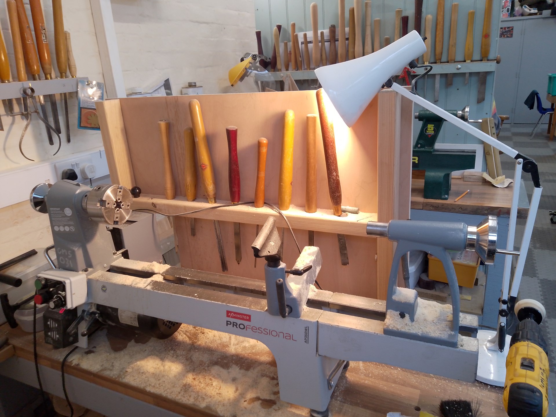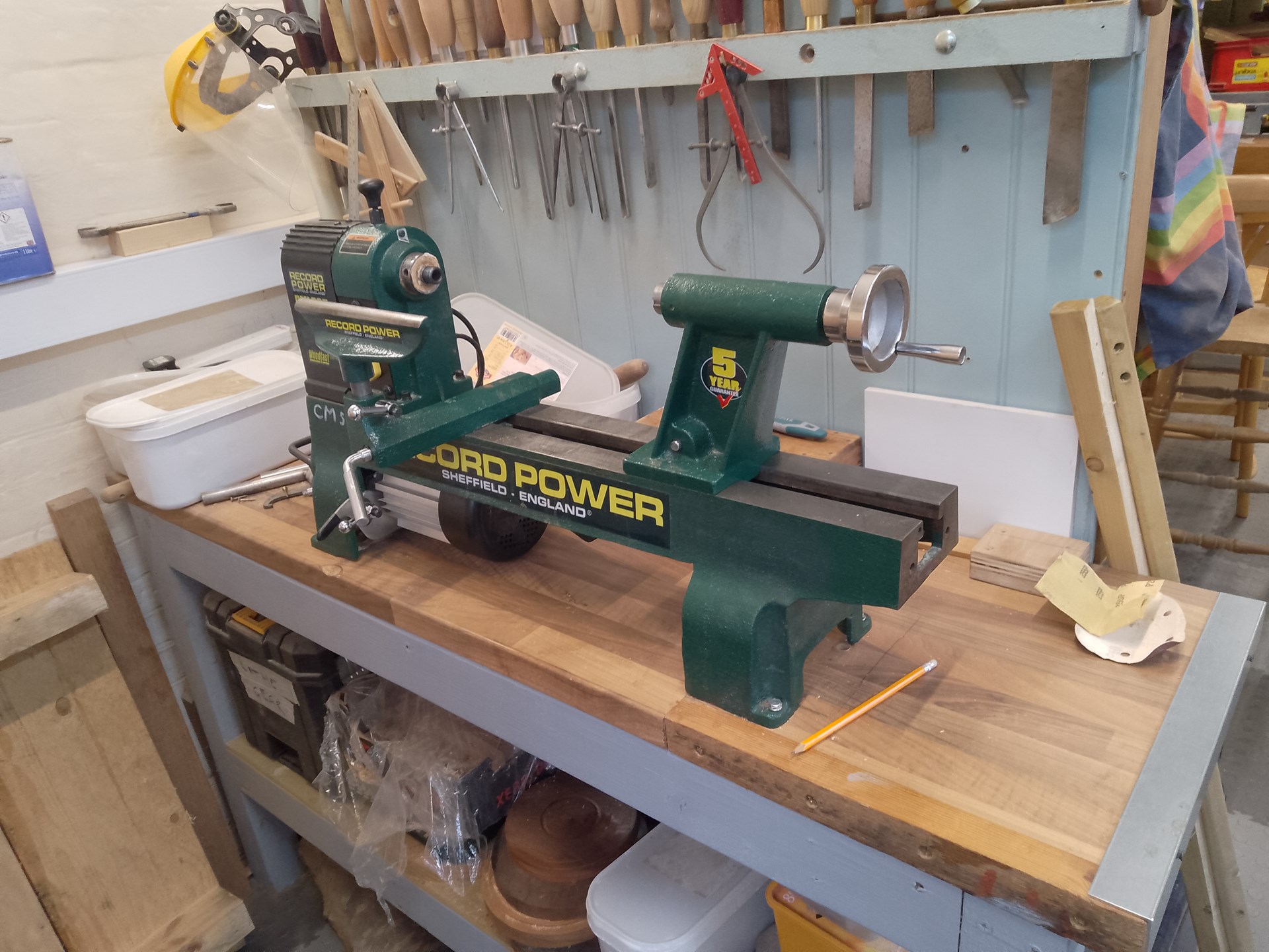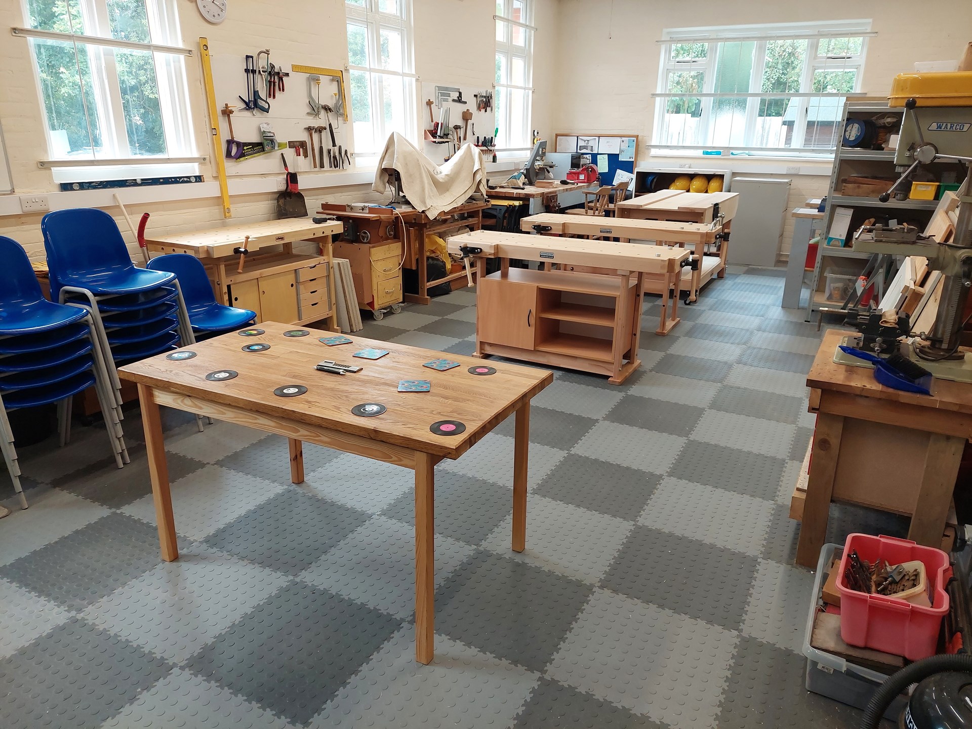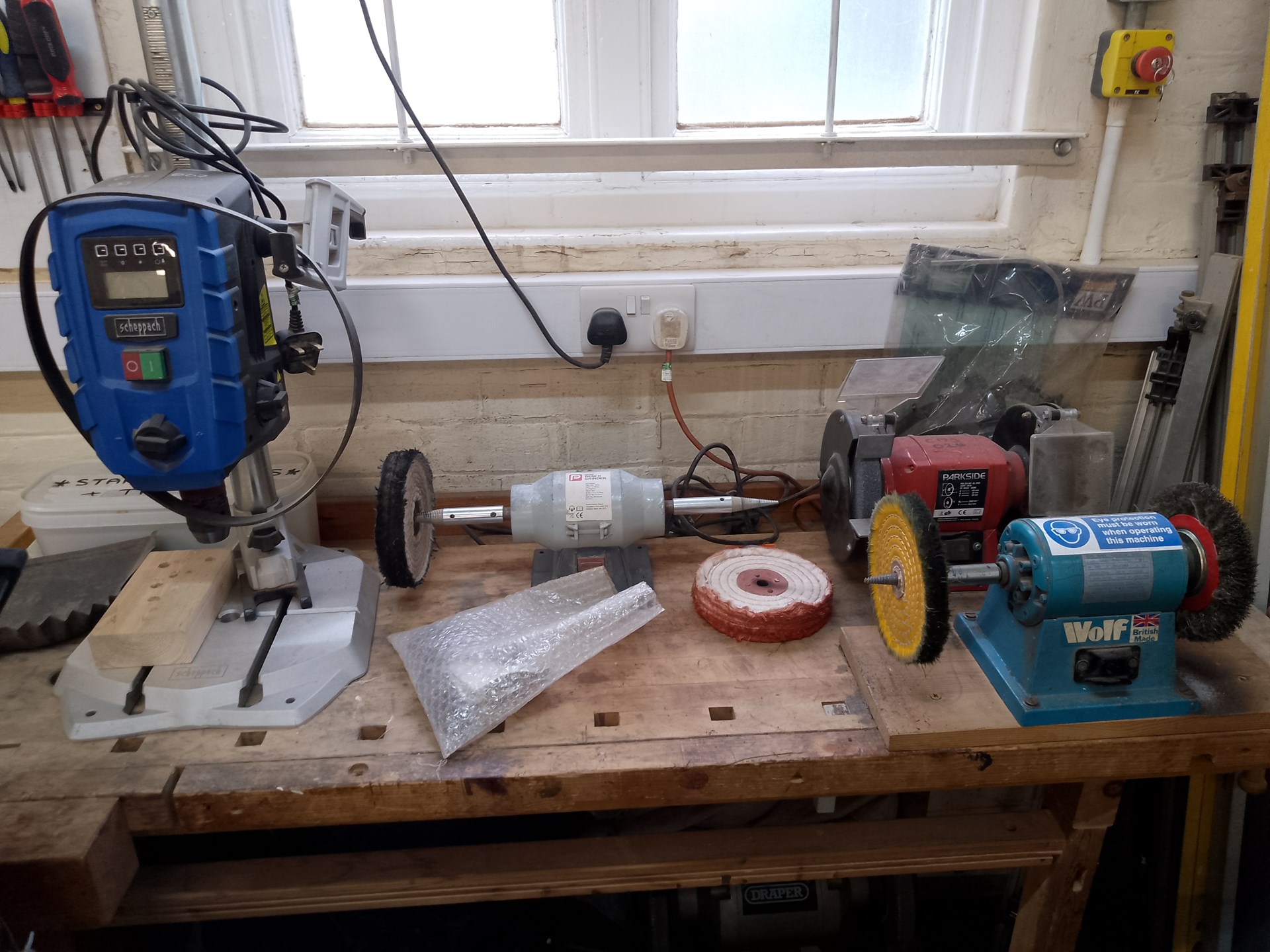 The well-equipped workshop includes: